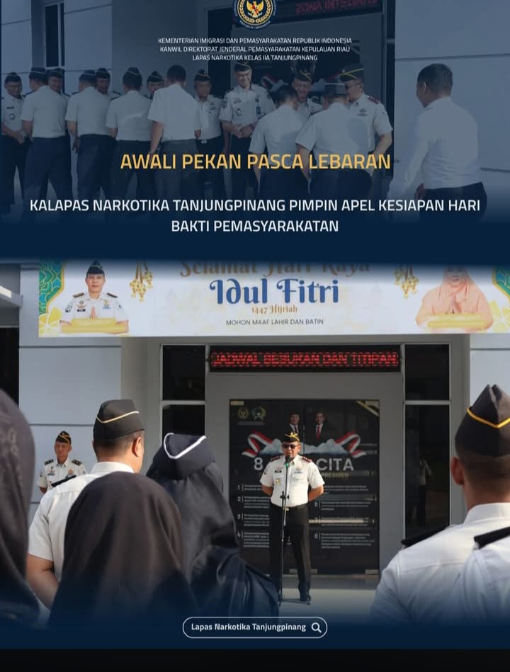 Beritabintan.co.id, Bintan (Kepri)- Mengawali pekan pertama setelah masa libur cuti bersama Hari Raya Idul Fitri, Lapas Narkotika Kelas IIA Tanjungpinang menggelar Apel Senin Pagi Pegawai yang dipimpin langsung oleh Kalapas, Bapak Fauzi Harahap, Senin (30/03).