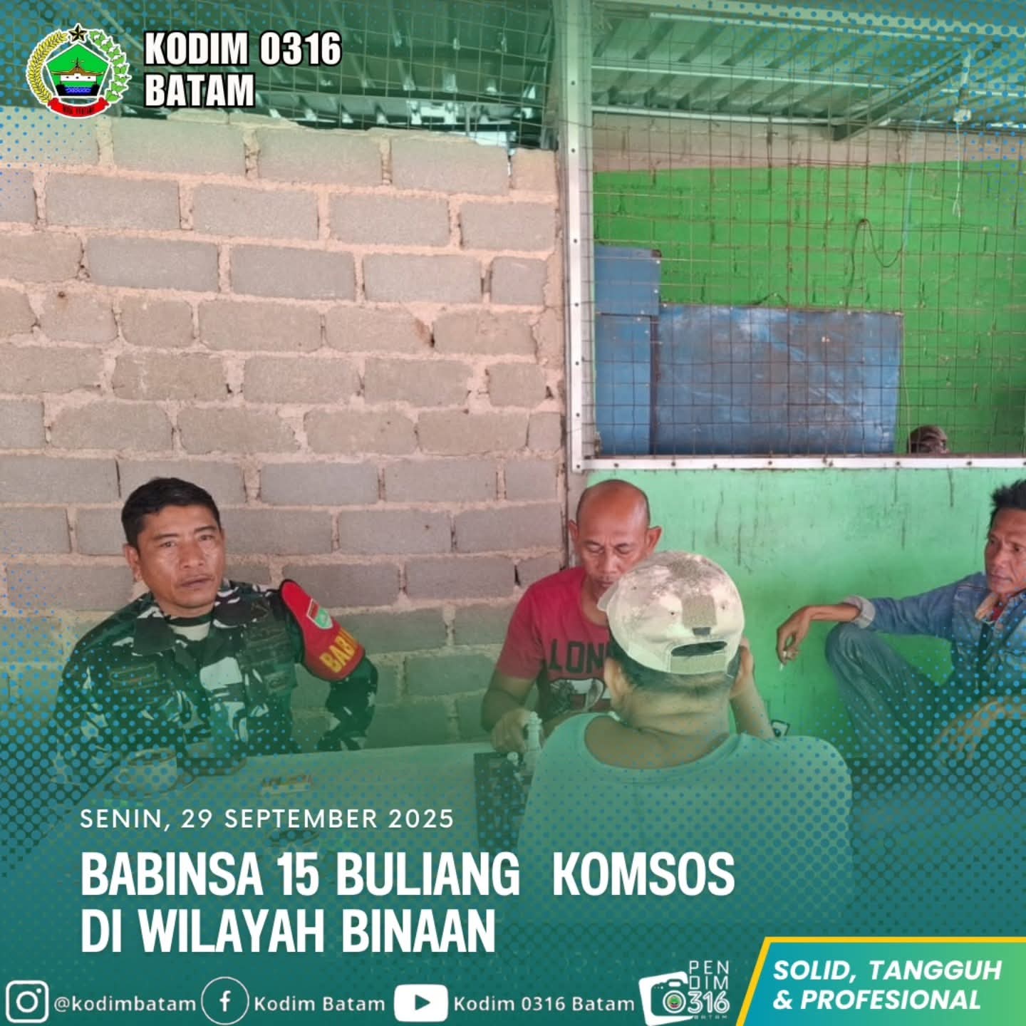 Beritabintan.co.id, Batam (Kepri)- Babinsa 15 Kelurahan Buliang, Koramil 02/Sekupang, Serka Z. Dalimunthe, melaksanakan kegiatan komunikasi sosial (Komsos) bersama warga bertempat di RT 26 RW 08, Kelurahan Buliang, Kecamatan Batu Aji. Senin(29/09/2025).