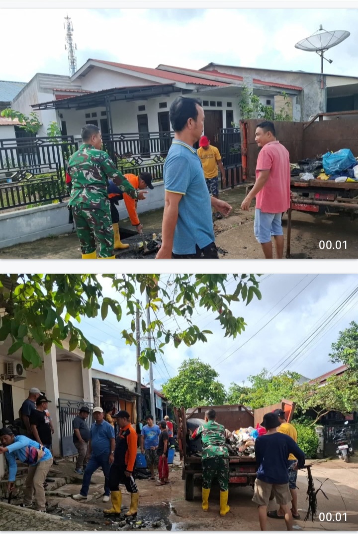 Kegiatan gotong-royong difokuskan pada pembersihan sampah yang menyumbat parit di kawasan Perumahan Bumi Kencana, yang selama ini menjadi penyebab banjir ketika hujan deras turun.