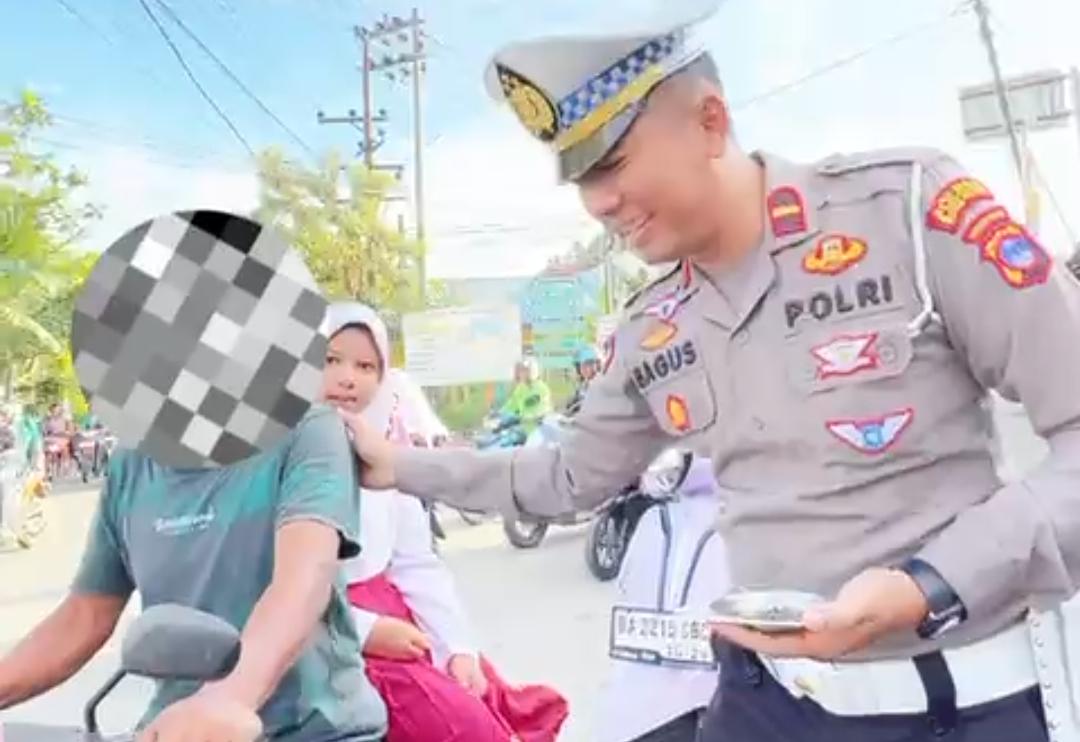 Aksi ini merupakan bagian dari program Polantas Menyapa yang bertujuan meningkatkan kesadaran akan keselamatan berlalu lintas.
