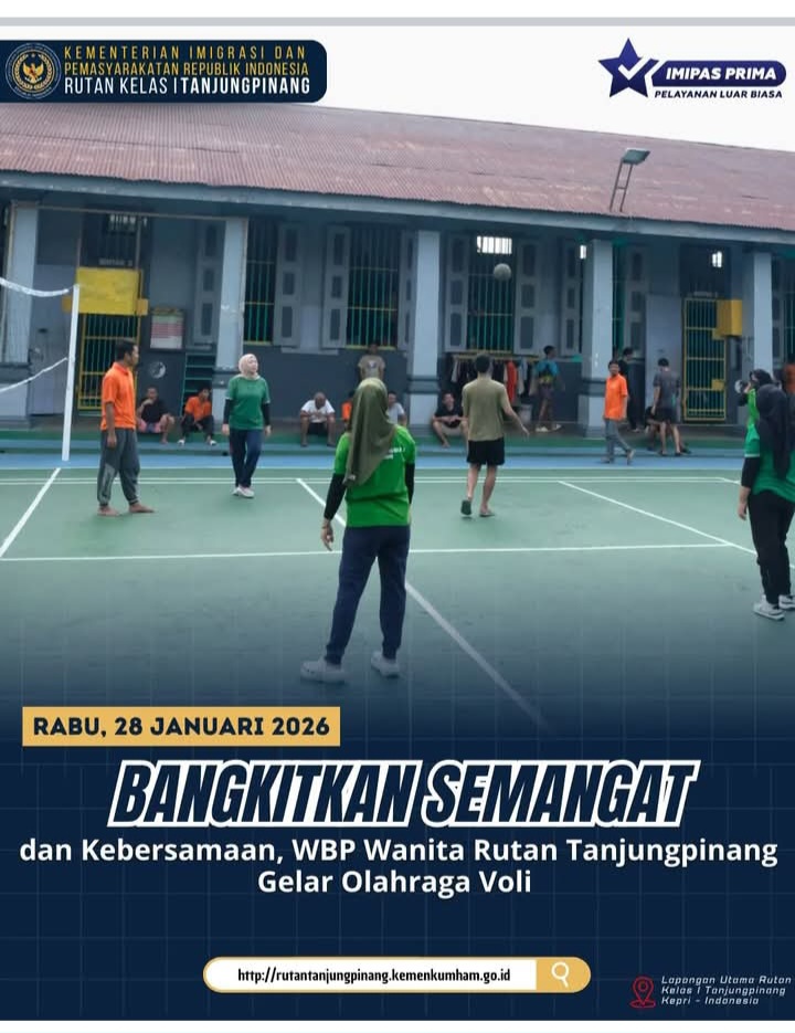 Rutan Kelas I Tanjungpinang terus berkomitmen menghadirkan berbagai kegiatan pembinaan yang positif dan bermanfaat, termasuk di bidang olahraga, guna menciptakan suasana rutan yang kondusif serta mendukung proses reintegrasi sosial warga binaan. (Maman)