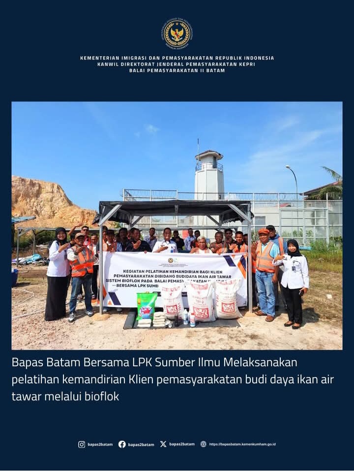 Melalui kerja sama antara Bapas Batam dan LPK Sumber Ilmu, pelatihan bioflok diharapkan tidak hanya meningkatkan keterampilan klien dalam bidang perikanan, tetapi juga mendorong kemandirian ekonomi serta mengurangi risiko pengulangan tindak pidana setelah kembali ke masyarakat.  (Maman)