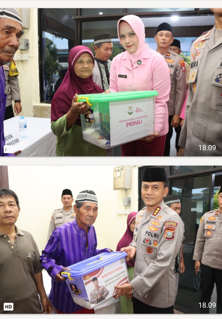 Tidak hanya itu, Kapolresta Tanjungpinang Kombes Pol. Indra Ranu Dikarta, S.I.K., M.Si. bersama Ketua Bhayangkari Cabang Kota Tanjungpinang juga menyerahkan bantuan sosial kepada kaum duafa yang membutuhkan.