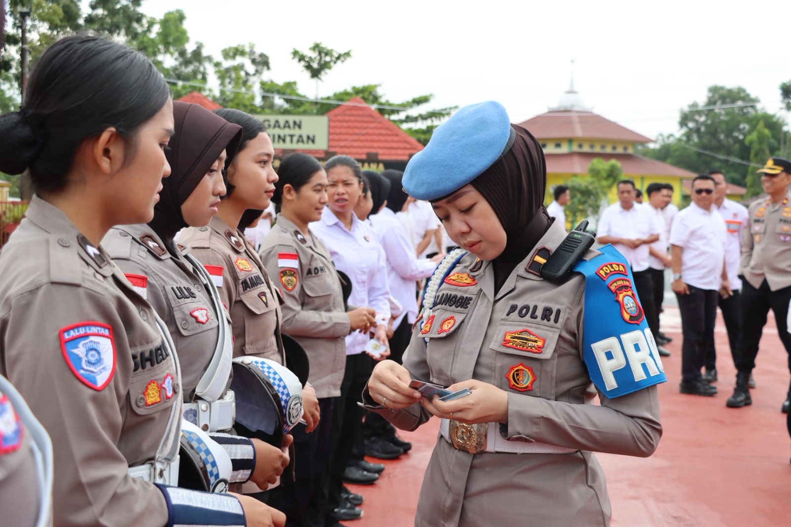 Pemeriksaan dilakukan dengan pengecekan kelengkapan administrasi personel seperti Kartu Anggota, KTP, SIM, Kartu Senpi serta surat kendaraan bermotor. Selain itu, dilakukan juga pemeriksaan sikap tampang diantaranya potongan rambut, ketentuan penggunaan gampol, tutup kepala, sepatu serta kerapihan tata cara berpakaian personel.