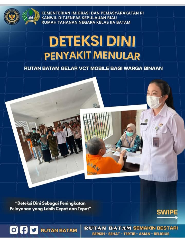 Beritabintan.co.id, Batam (Kepri)- Rumah Tahanan Negara Kelas IIA Batam Kembali menggelar kegiatan Voluntary Counseling and Testing (VCT) Mobile sebagai upaya deteksi dini penyakit menular di lingkungan rutan.