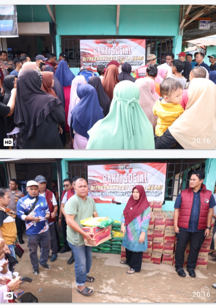 Beritabintan.co.id, Batam (Kepri)- Direktorat Reserse Narkoba (Ditresnarkoba) Polda Kepulauan Riau kembali menunjukkan kepeduliannya terhadap masyarakat melalui kegiatan pembagian bantuan sosial di Kampung Madani (Kampung Aceh), Kecamatan Sei Beduk, Batam. Kegiatan ini menjadi wujud nyata sinergi antara Polri dan masyarakat dalam mendukung program pemerintah sekaligus mempererat tali silaturahmi di lingkungan yang pernah dikenal sebagai “kampung narkoba” dan kini telah dideklarasikan sebagai kampung anti narkoba. Jumat (3/10/2025).