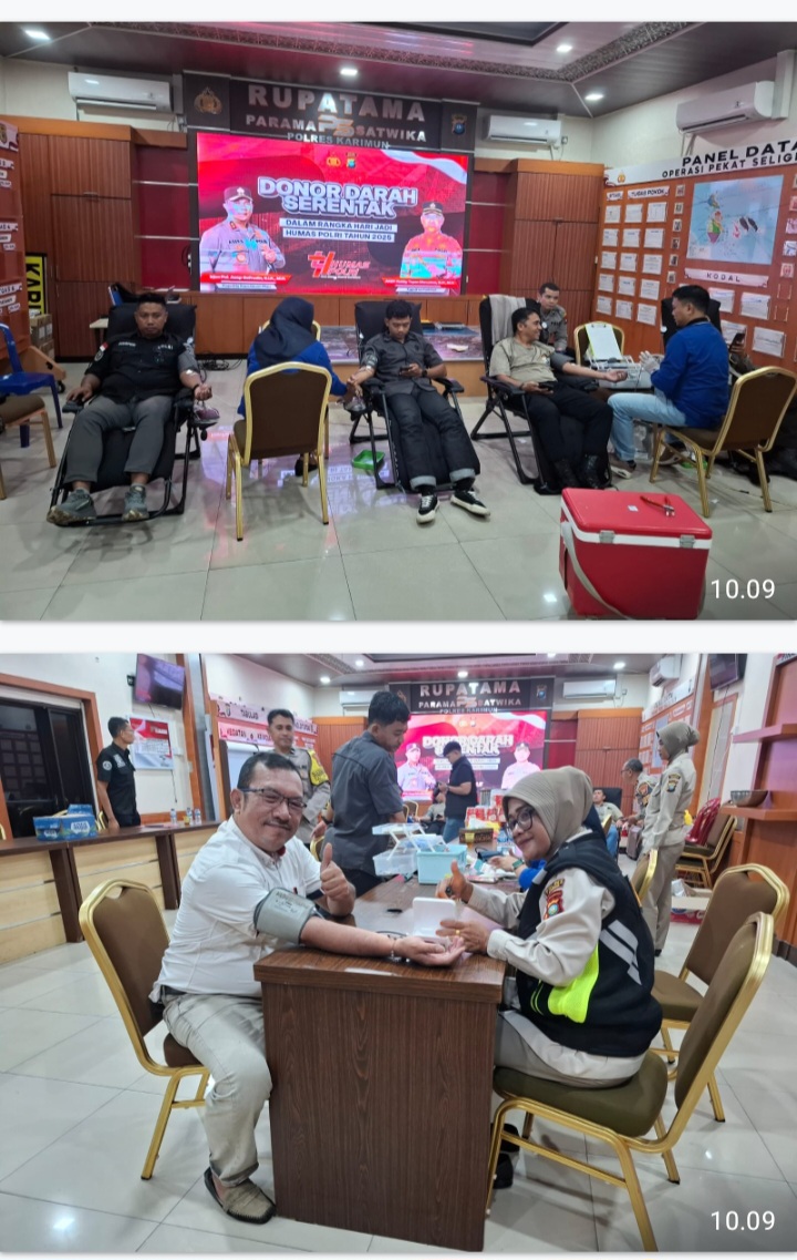 Beritabintan.co.id, Karimun (Kepri)- Dalam rangka memperingati Hari Jadi Humas Polri ke-74 Tahun 2025, Polres Karimun melaksanakan kegiatan Donor Darah Serentak dengan tema “Setetes Darah Untuk Sejuta Harapan”, bertempat di Mapolres Karimun, Rabu (22/10/2025).