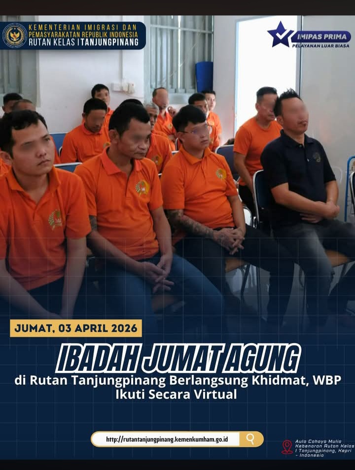 Beritabintan.co.id, Tanjungpinang (Kepri)- Dalam rangka pembinaan kepribadian di bidang kerohanian, Rumah Tahanan Negara Kelas I Tanjungpinang menggelar kegiatan ibadah memperingati Jumat Agung bagi Warga Binaan Pemasyarakatan (WBP) beragama Kristiani, Jumat (03/04/2026).
