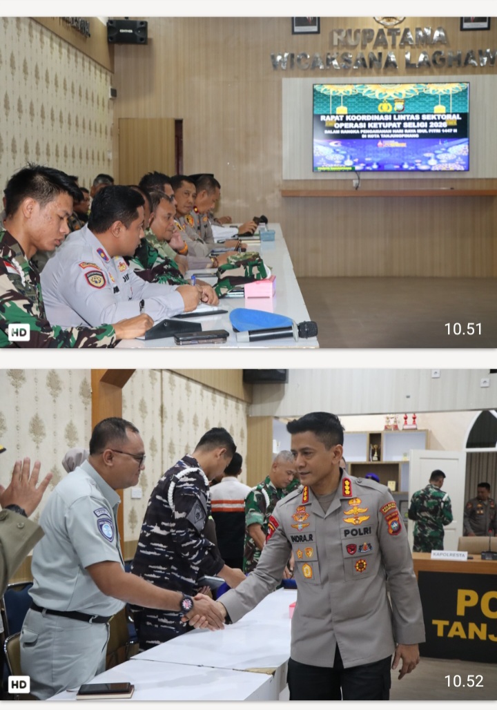 Beritabintan.co.id, Tanjungpinang (Kepri)-Polresta Tanjungpinang menggelar Rapat Koordinasi (Rakor) Lintas Sektoral Operasi Ketupat Seligi 2026 dalam rangka pengamanan Hari Raya Idul Fitri 1447 Hijriah di Rupatama Polresta Tanjungpinang. Selasa (10/3/2026)