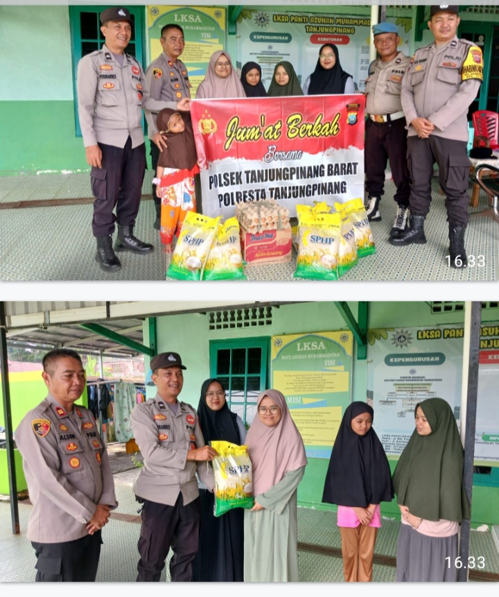 Beritabintan.co.id, Tanjungpinang (Kepri)- Polsek Tanjungpinang Barat kembali melaksanakan kegiatan sosial Jumat Berkah dengan berbagi Sembako, Jumat (10/10/2025).