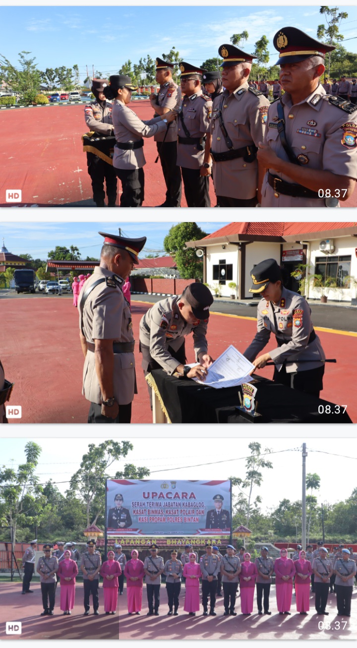 Beritabintan.co.id, Bintan (Kepri)- Kapolres Bintan AKBP Yunita Stevani, S.I.K., M.Si., pimpin langsung Upacara Serah Terima Jabatan (Sertijab) Kabaglog, Kasat Binmas, Kasat Polair dan Kasi Propam Polres Bintan bertempat di lapangan apel Polres Bintan, Sabtu (4/10/2025).