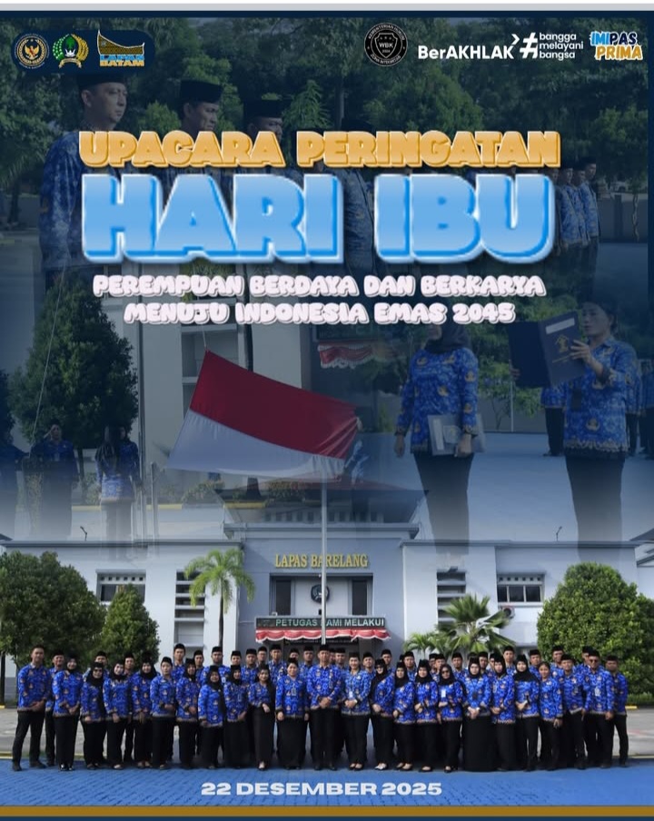 Keluarga Besar Bapas Batam Mengucapkan Selamat Hari Ibu Ke-97 Tahun 2025 Desember 22, 2025oleh Ringgooleh Ringgo Beritabintan.co.id, Batam (Kepri)- Keluarga besar Balai pemasyarakatan kelas II batam Mengucapkan : Selamat Hari Ibu ke-97 Tahun 2025 22 Desember 2025 “Merdeka Melaksanakan Dharma”. (Maman) Jangan LewatkanSelamat Memperingati Jumat Agung bagi seluruh umat KristianiKAPOLDA KEPRI PIMPIN KONFERENSI PERS PENGUNGKAPAN TINDAK PIDANA PENCURIAN DENGAN PEMBERATAN FASILITAS UMUMKalapas Batam bersama Pejabat Manajerial mengikuti Pelantikan Pimpinan Tinggi (Pimti) di lingkungan Kementerian Imigrasi dan Pemasyarakatan.Kapolres Kepulauan Anambas Terima Laporan Warga, Pastikan Segera DitindaklanjutiPOLDA KEPRI PERKUAT KEAMANAN INDUSTRI, PASTIKAN KAWASAN KABIL AMAN DAN KONDUSIF BAGI INVESTASI