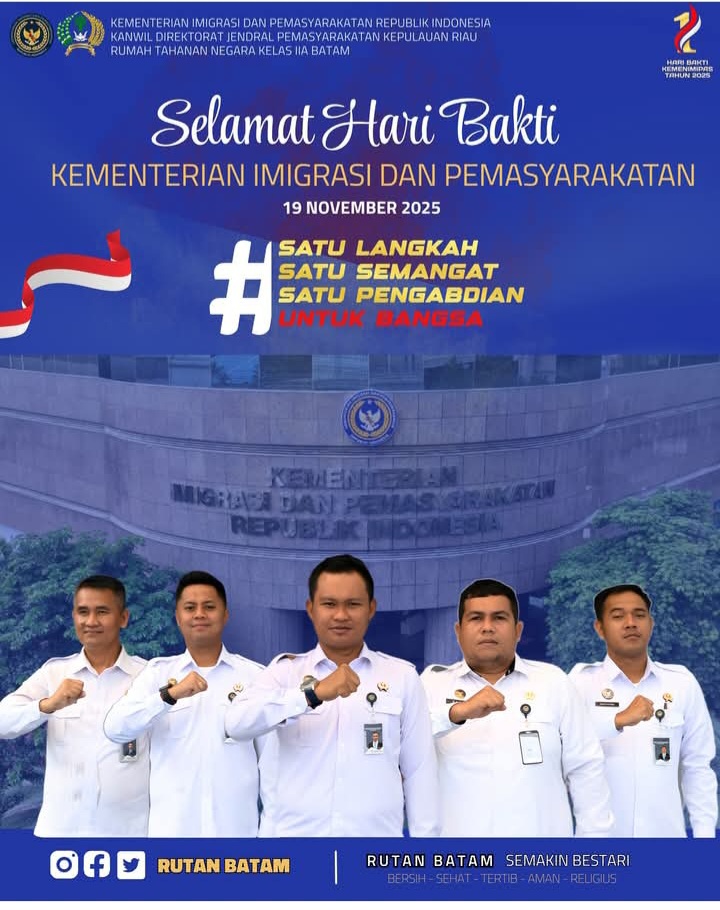 Keluarga Besar Rutan Kelas IIA Batam Mengucapkan Selamat Hari Bakti Kemenimipas Tahun 2025