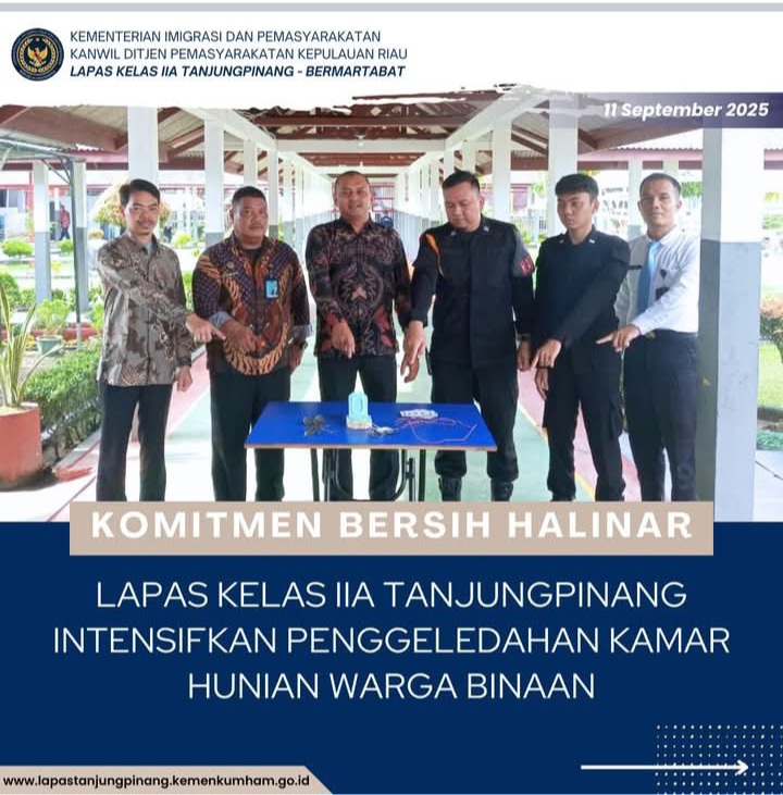 Komitmen Bersih Halinar, Lapas Kelas IIA Tanjungpinang Intensifkan Kamar Hunian Warga Binaan