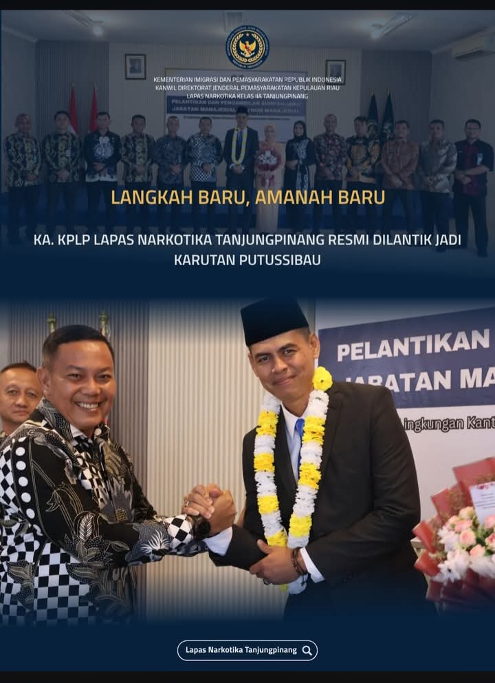 Momen ini menjadi sangat istimewa bagi keluarga besar Lapas Narkotika Tanjungpinang, lantaran Kepala Kesatuan Pengamanan Lapas (KPLP), Bapak Syahrinaldi, A.Md.IP, S.H., M.H., resmi mendapat amanah baru. Beliau dilantik menjadi Kepala Rumah Tahanan Negara (Karutan) Kelas IIB Putussibau, Kalimantan Barat.