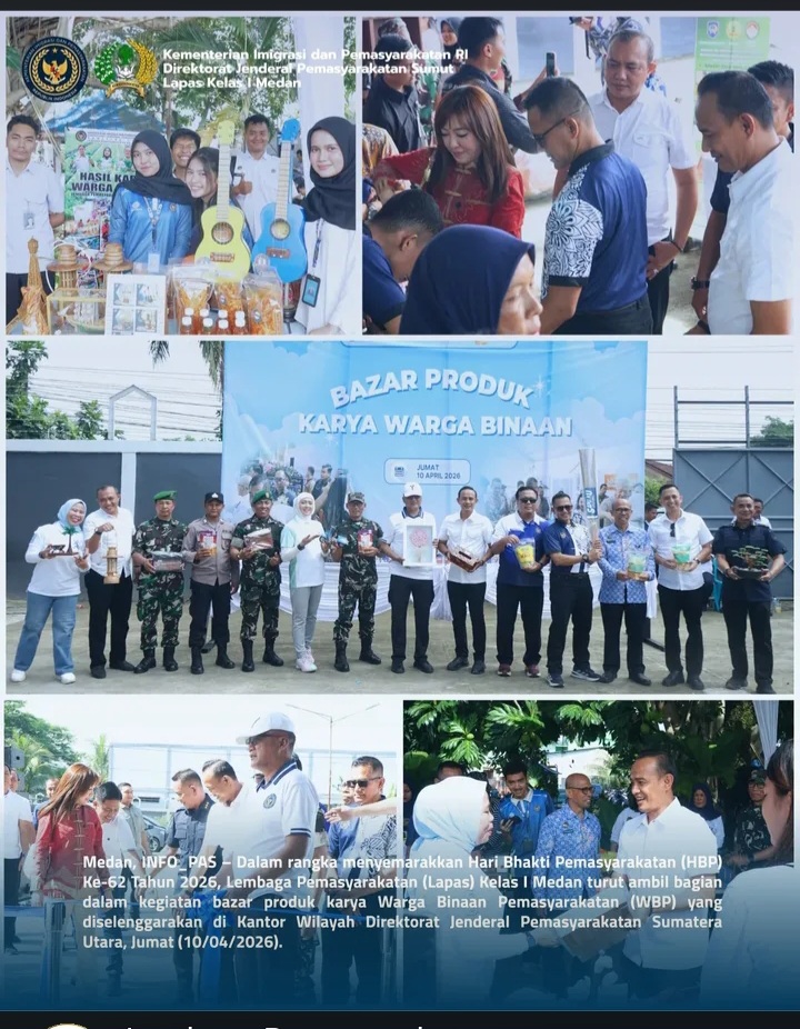 Beritabintan.co.id, Medan- Dalam rangka menyemarakkan Hari Bhakti Pemasyarakatan (HBP) Ke-62 Tahun 2026, Lembaga Pemasyarakatan (Lapas) Kelas I Medan turut ambil bagian dalam kegiatan bazar produk karya Warga Binaan Pemasyarakatan (WBP) yang diselenggarakan di Kantor Wilayah Direktorat Jenderal Pemasyarakatan Sumatera Utara, Jumat (10/04/2026).