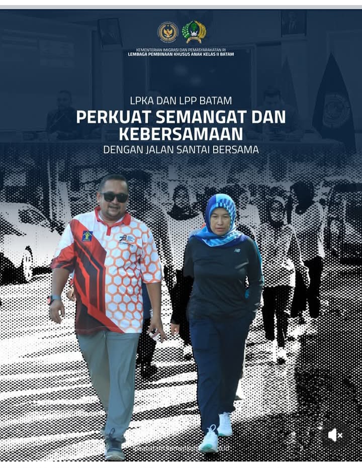 Beritabintan.co.id, Batam (Kepri)- Dalam rangka menjaga kebugaran jasmani sekaligus mempererat tali silaturahmi antar pegawai, Lembaga Pembinaan Khusus Anak (LPKA) Kelas II Batam bersama Lembaga Pemasyarakatan Perempuan (LPP) Kelas IIB Batam menggelar kegiatan Jalan Santai Bersama pada Jumat pagi yang penuh semangat. (Maman)