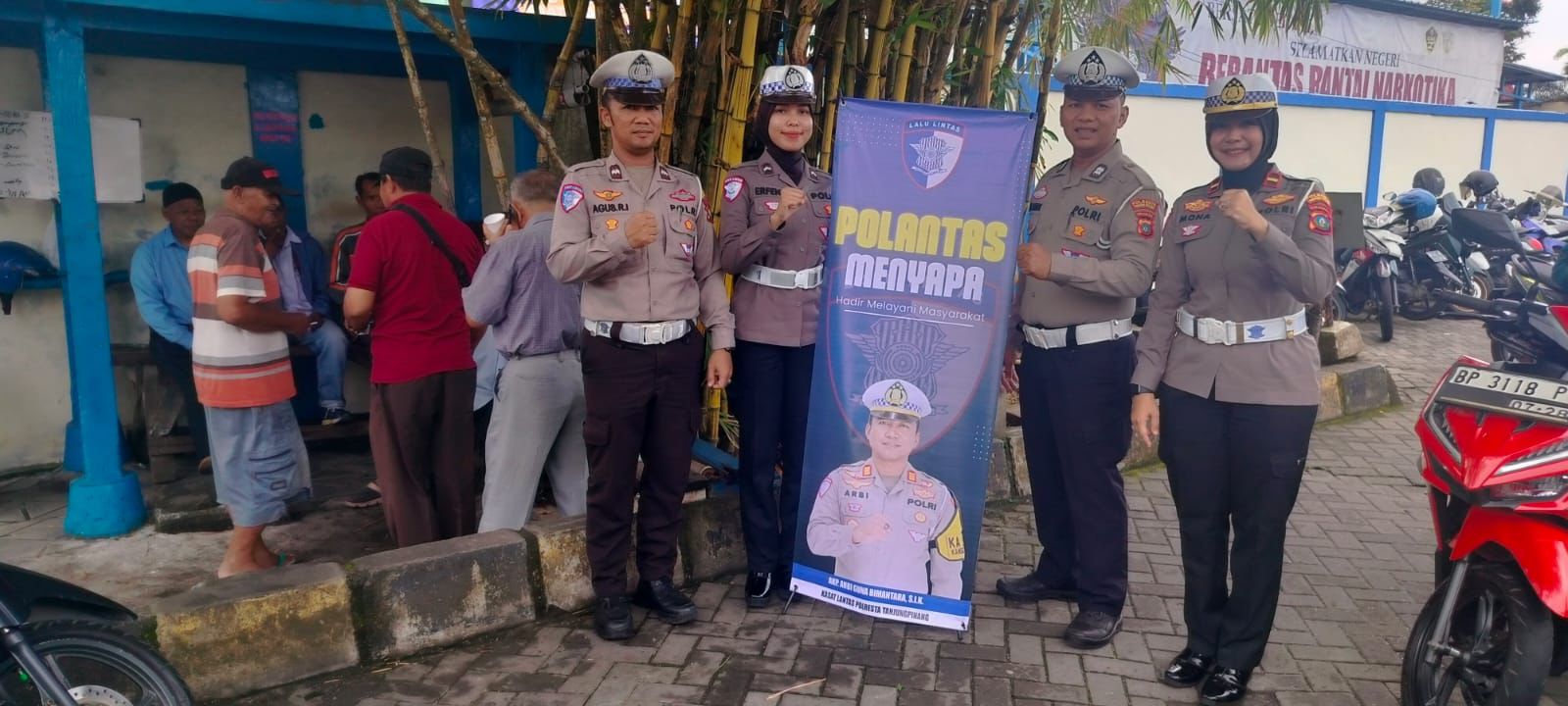 “Kita menyapa sambil mengobrol kepada ojek pangkalan pelabuhan untuk memberikan himbauan tertib berlalu lintas,” ujarnya.