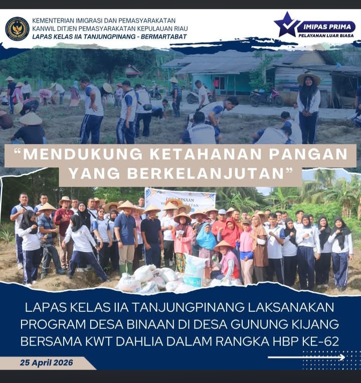 Kepala Lapas Kelas IIA Tanjungpinang, Suparman, menyampaikan bahwa program desa binaan ini tidak hanya bertujuan untuk memperingati HBP ke-62, tetapi juga sebagai wujud komitmen pemasyarakatan dalam memberikan kontribusi positif kepada masyarakat sekitar.