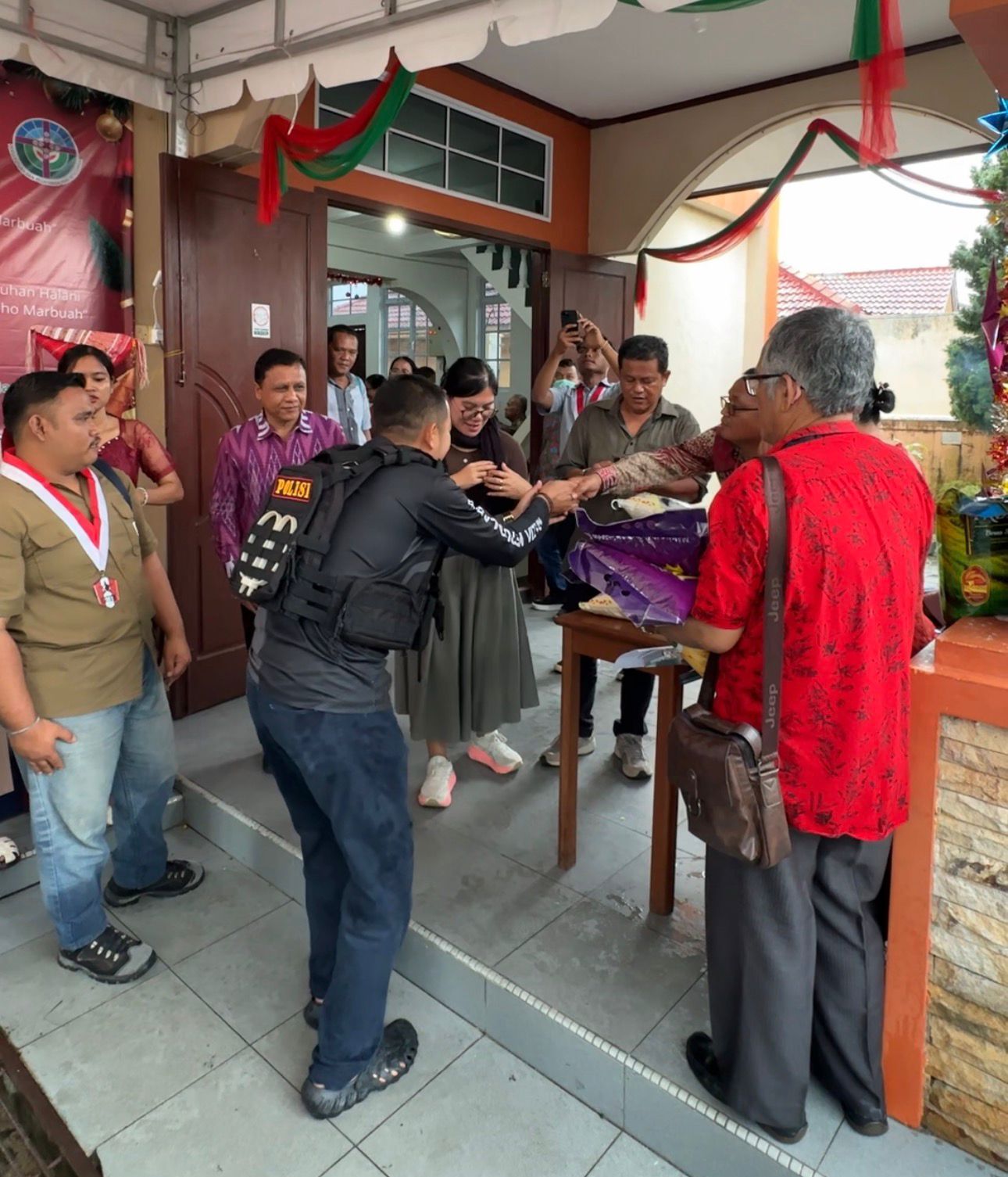 Di halaman Gereja GKPS Sei Jang Tanjungpinang, Ahad 28 Desember 2025, puluhan karung beras tersusun rapi di belakang sebuah mobil Jeep hitam. Hujan tak menyurutkan langkah para mahasiswa GMNI yang bahu-membahu bersama Bripka Zulhamsyah menyalurkan bantuan kepada jemaat gereja dan warga sekitar.