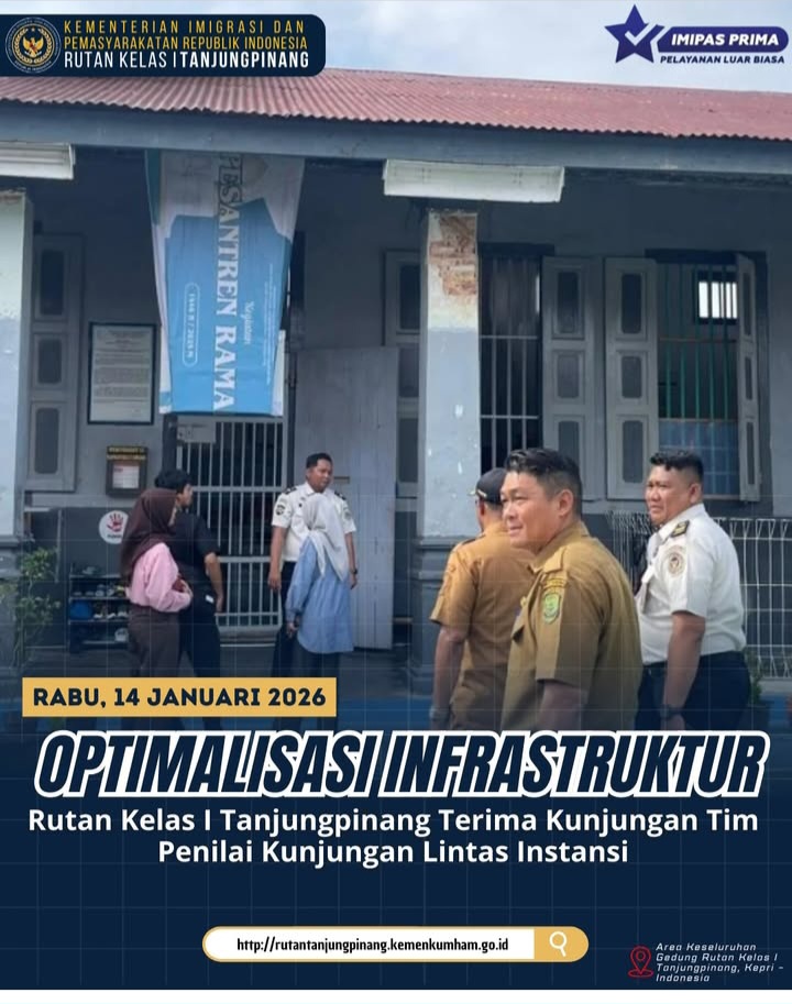 Beritabintan.co.id, Tanjungpinang (Kepri)-Rumah Tahanan Negara (Rutan) Kelas I Tanjungpinang menerima kunjungan dari Dinas Pekerjaan Umum Provinsi Kepulauan Riau, Balai Pelestarian Kebudayaan Wilayah IV, serta Dinas Pariwisata dan Kebudayaan Kota Tanjungpinang, dalam rangka peninjauan serta penilaian kondisi gedung dan bangunan, pada Selasa (13/01).