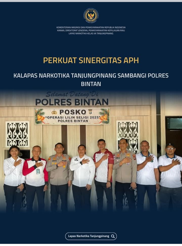 Kalapas Fauzi Harahap menyampaikan bahwa sinergi ini merupakan implementasi nyata dari program kerja pemasyarakatan dalam membangun hubungan harmonis dengan mitra penegak hukum. “Kesepahaman ini sangat penting untuk menjamin kondusivitas wilayah hukum Kabupaten Bintan, khususnya di lingkungan Lapas Narkotika Tanjungpinang,” tegasnya.