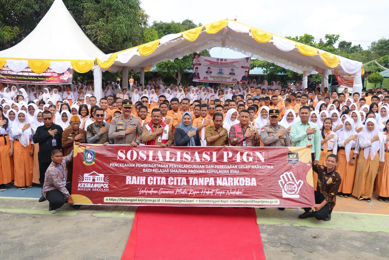Kegiatan dihadiri Ketua TP PKK Prov. Kepri Hj. Dewi Kumalasari Ansar, M.Pd., Kabidhumas Polda Kepri Kombes Pol Zahwani Pandra Arsyad, S.H., M.Si., perwakilan Bawaslu, Kepala BNN Tanjungpinang AKBP Mohamad Dafi Bastomi, unsur TNI–Polri, perangkat daerah, dan perbankan. Ratusan siswa turut mengikuti kegiatan ini.