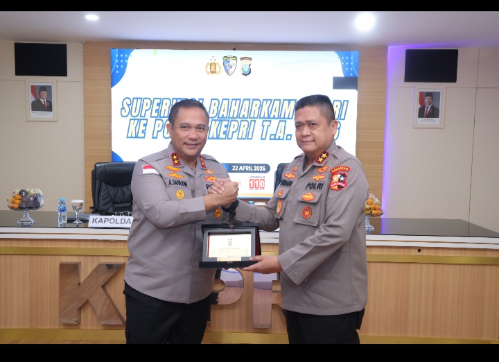 Beritabintan.co.id, Batam (Kepri)- Polda Kepri menerima kunjungan Tim Supervisi Baharkam Polri dalam rangka evaluasi dan penguatan fungsi pemeliharaan keamanan ketertiban masyarakat (Harkamtibmas). Kegiatan ini berlangsung di Ruang Rapat Utama (Rupatama) Polda Kepri. Rabu (22/4/2026).