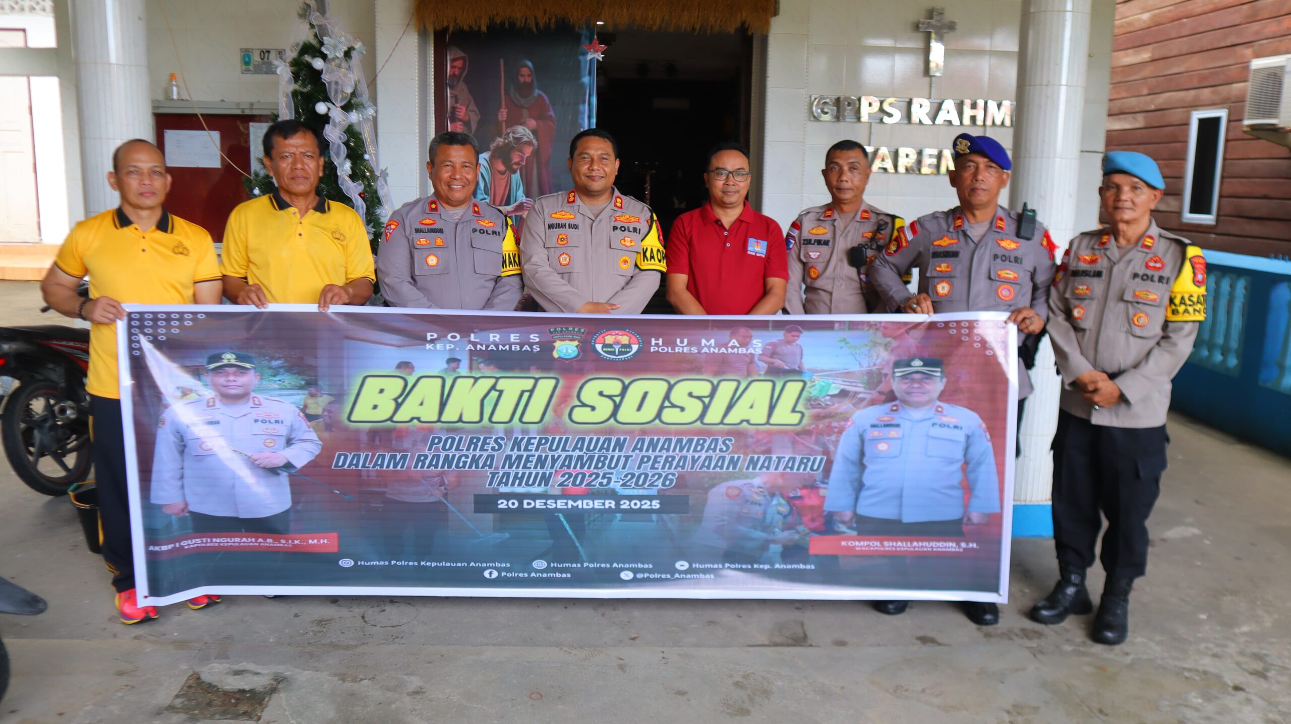 Beritabintan.co.id, Anambas (Kepri)- Menyambut perayaan Natal 2025 dan Tahun Baru 2026, Polres Kepulauan Anambas menggelar kegiatan gotong royong dan bakti sosial di sejumlah gereja yang berada di wilayah Kecamatan Siantan dan Siantan Tengah, Kabupaten Kepulauan Anambas, Sabtu (20/12/2025).