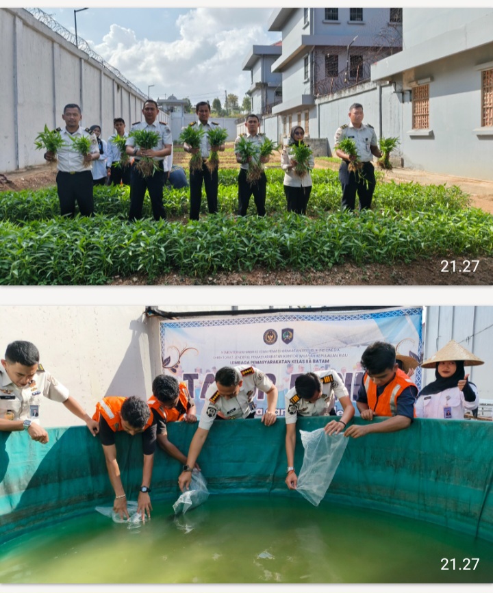 Beritabintan.co.id, Batam (Kepri)- Lembaga Pemasyarakatan (Lapas) Kelas IIA Batam kembali menunjukkan komitmennya dalam mendukung program ketahanan pangan nasional melalui kegiatan panen sayur kangkung dan penebaran benih ikan lele, Senin (16/3/2026).