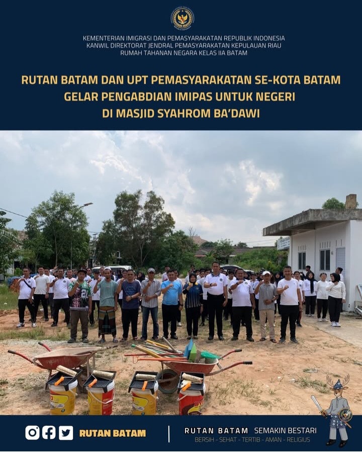 Beritabintan.co.id, Batam (Kepri)- Dalam rangka memperingati Hari Bakti Pemasyarakatan ke-1, jajaran Pemasyarakatan se-Kota Batam melaksanakan kegiatan Pengabdian Imipas untuk Negeri yang dipusatkan di Masjid Syahrom Ba’dawi, Senin (1/12/2025).