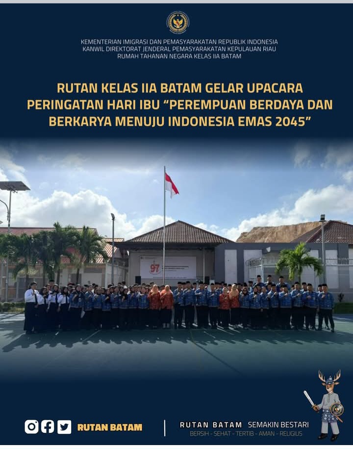 Upacara peringatan Hari Ibu di Rutan Kelas IIA Batam berlangsung dengan lancar dan penuh khidmat, sekaligus menjadi simbol penghormatan atas kontribusi besar perempuan dalam membangun bangsa dan institusi pemasyarakatan. (Maman)
