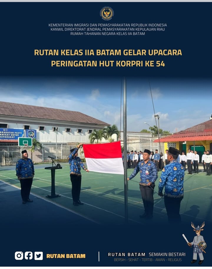 Beritabintan.co.id, Batam (Kepri)- Rutan Kelas IIA Batam melaksanakan upacara peringatan Hari Ulang Tahun Korps Pegawai Republik Indonesia (KORPRI) ke-54 pada Senin (01/12).
