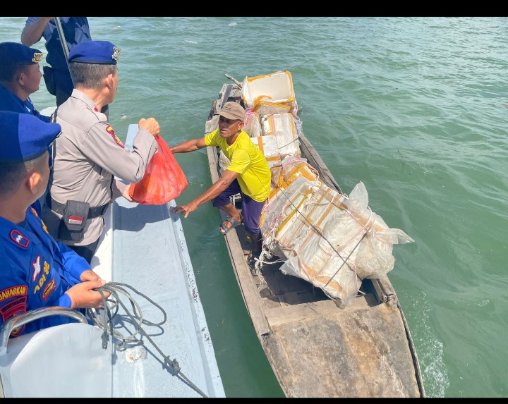 Dalam kegiatan tersebut, personel Sat Polairud menyalurkan sebanyak 30 paket sembako kepada warga. Setiap paket bantuan berisi beras 5 kilogram, gula pasir, mie instan, telur, tepung, teh atau kopi, serta minyak goreng yang diharapkan dapat membantu memenuhi kebutuhan pokok masyarakat.