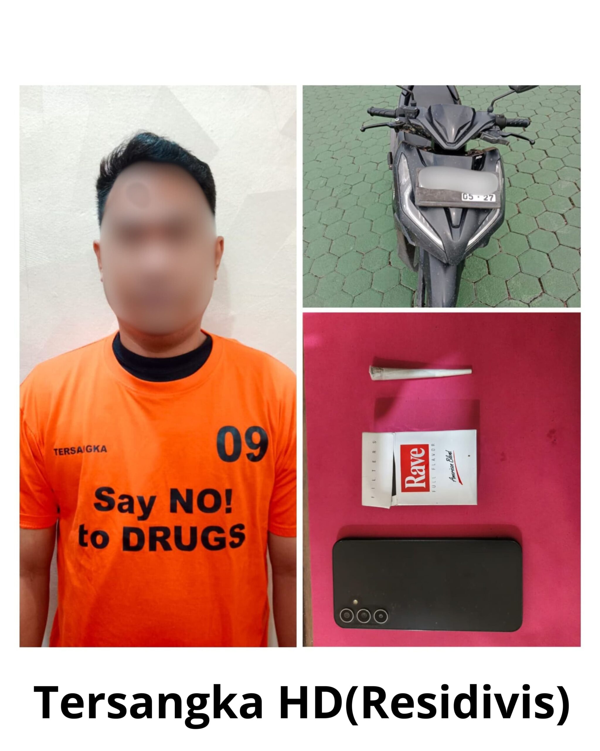 “Dari ketiga tersangka yang kami amankan, kemudian dilakukan pemeriksaan urine dan hasilnya semua positif ganja, selanjutnya untuk ketiga tersangka akan menjalani proses hukum, untuk tersangka HD adalah seorang residivis kasus yang sama yaitu narkoba jenis ganja.” ujar AKP Lajun.