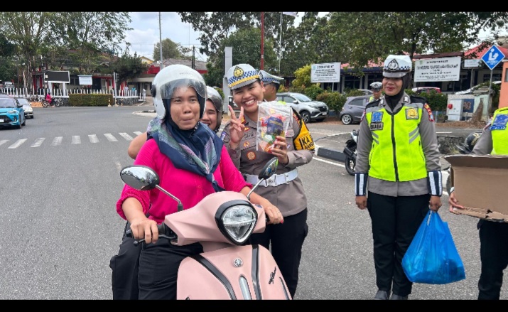 “Hadiah sembako diberikan sebagai bentuk apresiasi agar para pengendara selalu tertib dan mematuhi peraturan lalu lintas,” ujarnya.