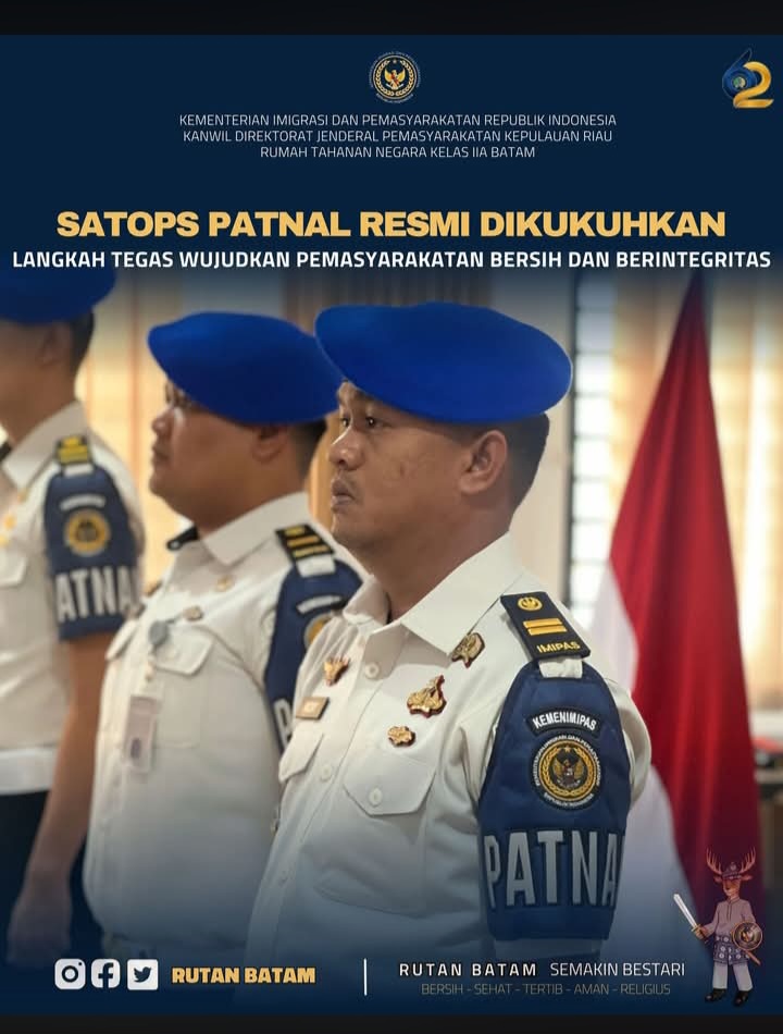 Beritabintan.co.id, Batam (Kepri)- Kepala Kantor Wilayah Ditjenpas Kepulauan Riau, Aris Munandar, melaksanakan pengukuhan Satuan Tugas Operasi Kepatuhan Internal (Satops Patnal) kepada jajaran pegawai pemasyarakatan di wilayah Kepulauan Riau, Rabu (08/04/2026).