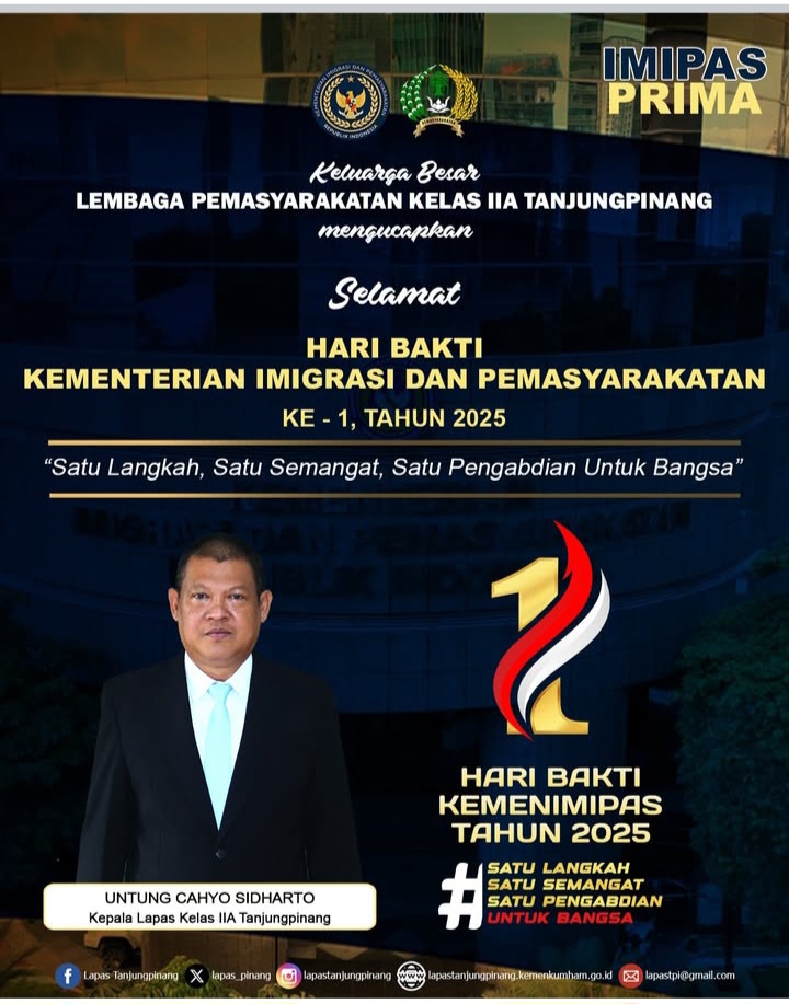 Beritabintan.co.id, Bintan (Kepri)- Segenap Keluarga Besar Lembaga Pemasyarakatan Kelas IIA Tanjungpinang mengucapkan….