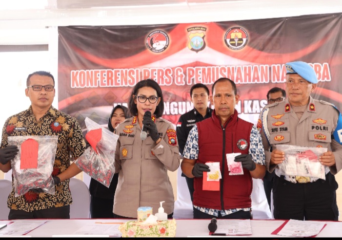 Dari rangkaian pengungkapan tersebut, penyidik mengamankan 45 tersangka, terdiri dari 41 laki-laki dan 4 perempuan. Selain itu, turut disita sejumlah barang bukti berupa narkotika jenis sabu seberat 735,17 (tujuh ratus tiga puluh lima koma tujuh belas) gram, ekstasi sebanyak 180 (seratus delapan puluh) butir, ganja seberat 265,13 (dua ratus enam puluh lima koma tiga belas) gram, serta etomidate sebanyak 353 (tiga ratus lima puluh tiga) pcs, yang sebagian dikemas dalam bentuk cartridge vape. Seluruh barang bukti tersebut diamankan guna kepentingan penyidikan lebih lanjut sesuai ketentuan hukum yang berlaku.