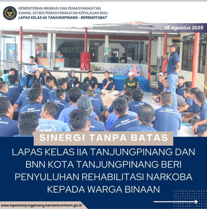 Program rehabilitasi ini merupakan kerja sama antara Lapas Kelas IIA Tanjungpinang dan BNN Kota Tanjungpinang sebagai bentuk sinergi dalam mendukung pemulihan bagi warga binaan yang terdampak penyalahgunaan narkoba.