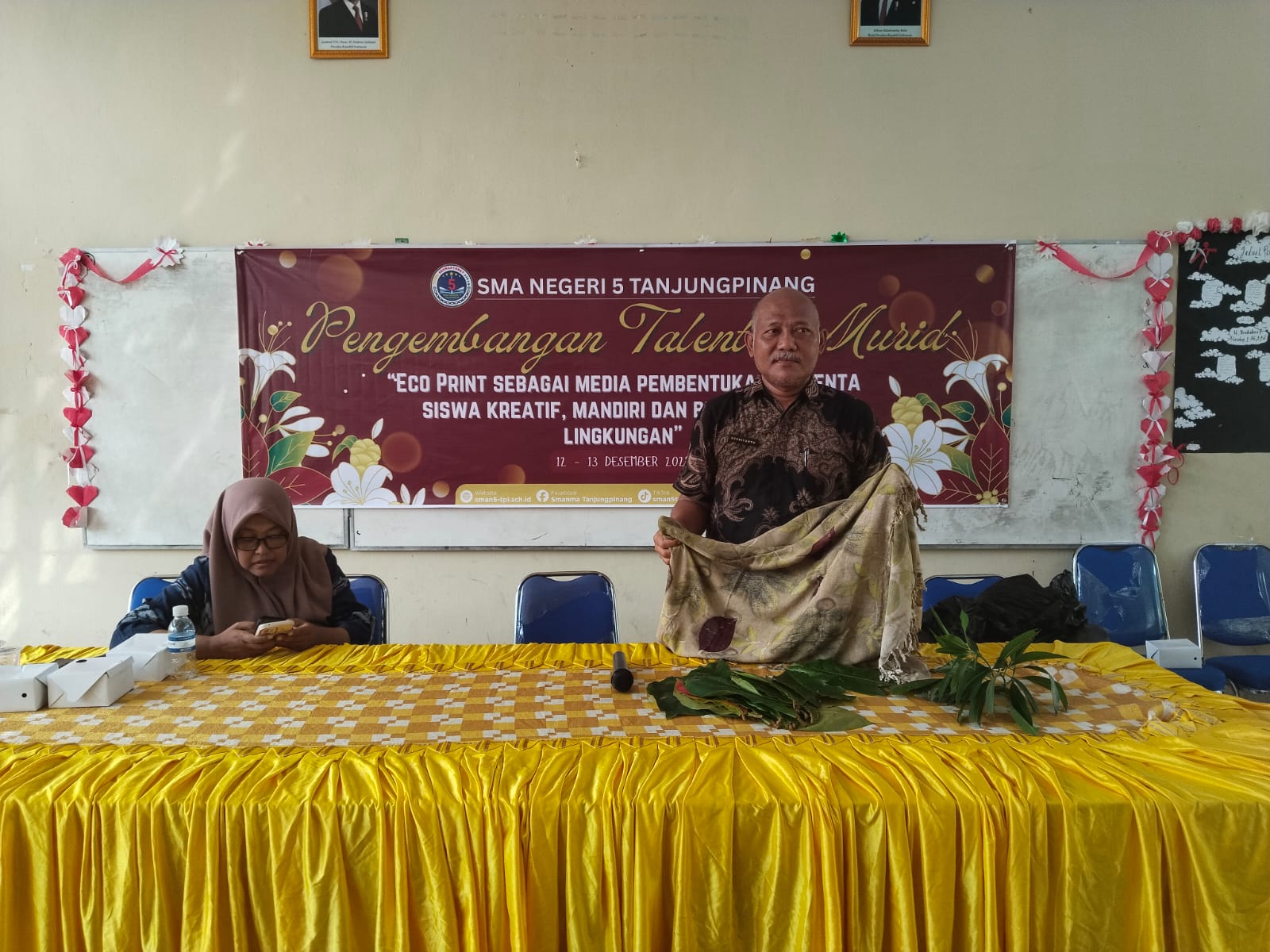 Beritabintan.co.id, Tanjungpinang (Kepri)- SMA Negeri 5 Tanjungpinang mengadakan pelatihan pengembangan talenta murid dengan tema ‘ Ecoprint sebagai media pembentukan talenta siswa kreatif, mandiri dan berwawasan lingkungan. Jumat, (12/12/26)