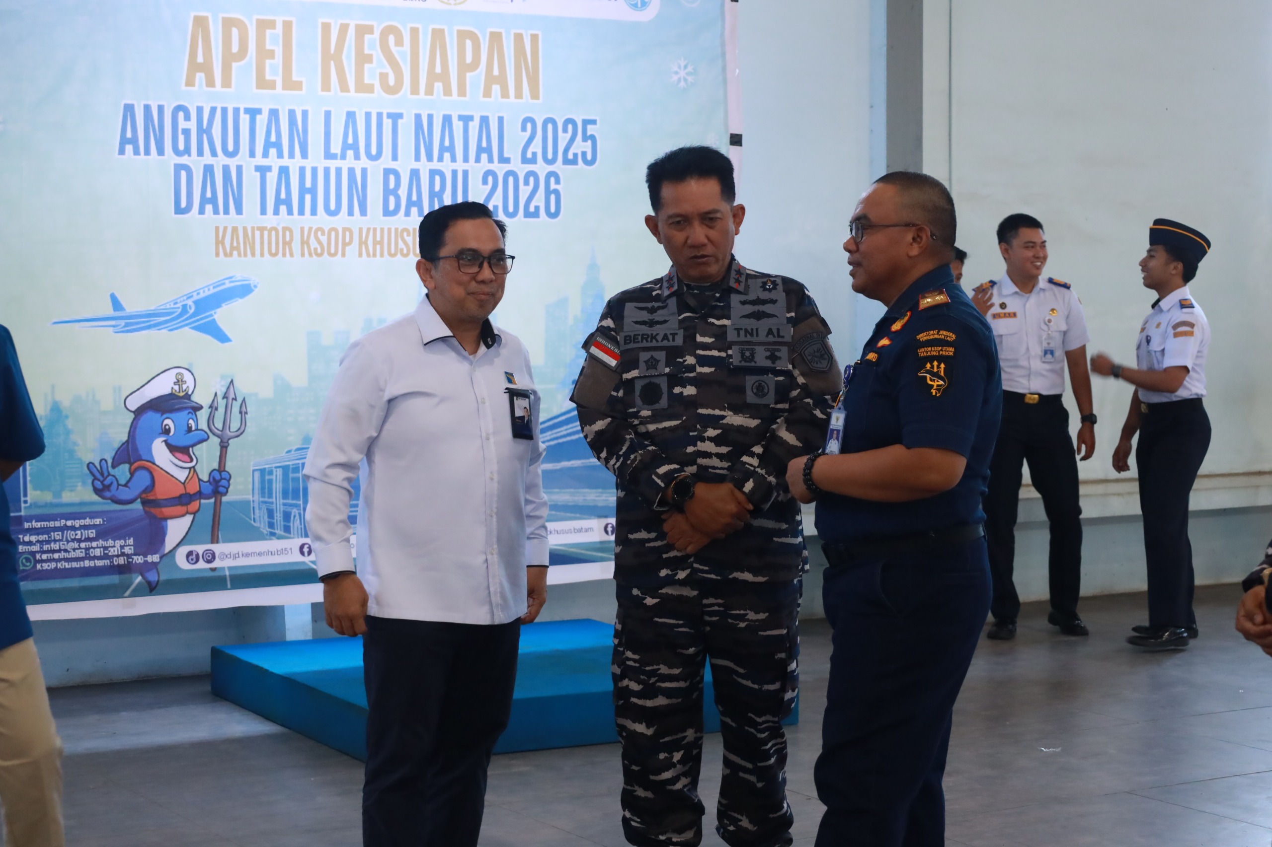 Apel yang dipimpin oleh Kepala Kantor KSOP Batam Bapak M. Takwim Masuku, S.T., M.MT., dan dihadiri Instansi maritim wilayah Batam. dalam sambutanya, ia memaparkan informasi cuaca maritim, potensi gelombang, serta dinamika atmosfer yang dapat mempengaruhi aktivitas pelayaran serta menyusun strategi pengawasan dan kesiapsiagaan menghadapi puncak arus mudik, tahun baru, dan arus balik. Dengan menjaga keamanan, keselamatan, ketertiban dan kelancaran lalu lintas selama periode Angkutan Natal tahun 2025 dan tahun baru 2026