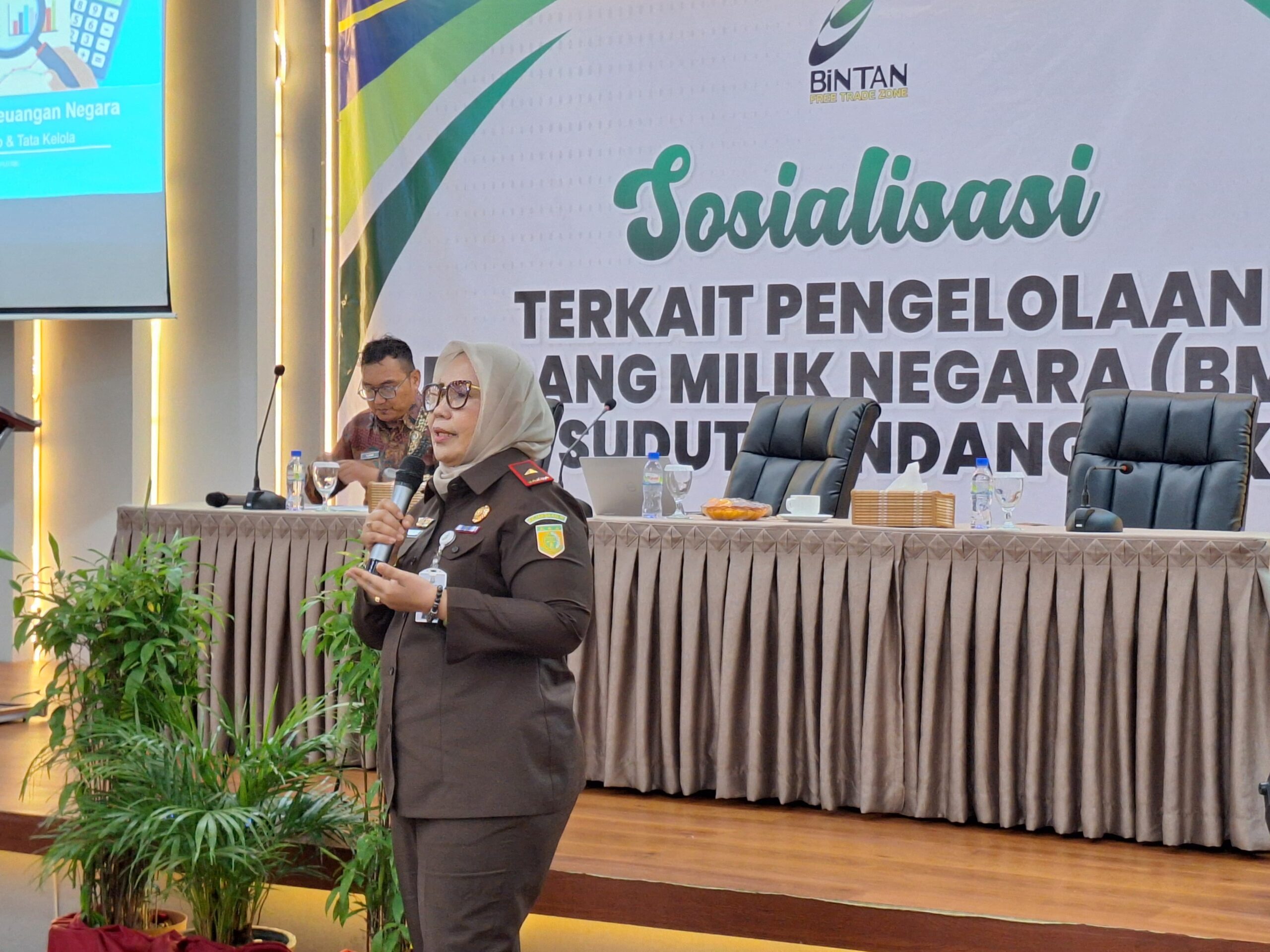Beritabintan.co.id, Bintan (Kepri)- Wakil Kepala Kejaksaan Tinggi Kepulauan Riau Irene Putrie menjadi narasumber pada kegiatan Sosialisasi terkait Pengelolaan BMN dari Sudut Pandang Hukum yang diselenggarakan Badan Pengusahaan Kawasan Perdagangan Bebas dan Pelabuhan Bebas Bintan Wilayah Kabupaten Bintan, bertempat di Jasmine Meeting Room Awandari Resort and Convention, Bhadra Resort Bintan, Jl. Raya Kawal KM. 25 Kecamatan Toapaya Kabupaten Bintan, Rabu (29/10/2025).