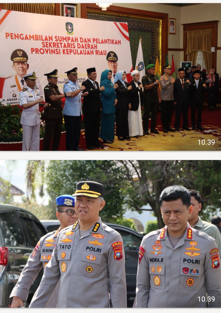 Beritabintan.co.id, Tanjungpinang (Kepri)- Kapolresta Tanjungpinang Kombes Pol Indra Ranu Dikarta, S.I.K., M.Si., bersama Irwasda Polda Kepri Kombes Pol Romin Thaib, S.I.K., M.Si., menghadiri kegiatan Pengambilan Sumpah dan Pelantikan Sekretaris Daerah (Sekda) Provinsi Kepulauan Riau yang berlangsung di Gedung Daerah Provinsi Kepri, Jalan S.M. Amin No.1, Tanjungpinang, Senin (27/4/2026) pagi.